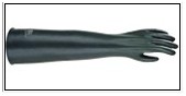 1.黑色天然乳膠手套 2.長度:432mm;雙層厚度:2.4mm 3.高度防止水性化學品 4.卷邊設計防止撕裂袖口且容易穿脫 5.表面過氯處理,加強表面性能